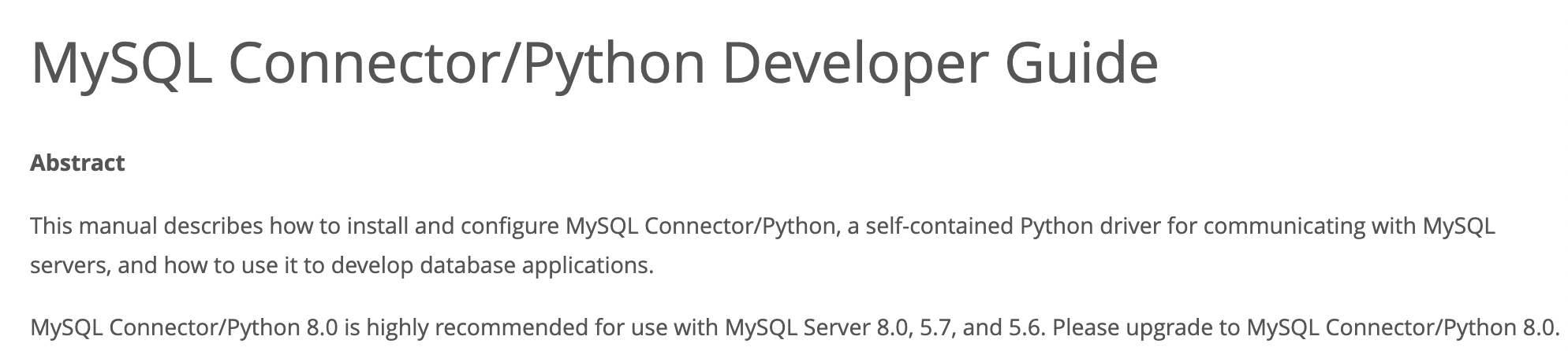 MySQL :: MySQL Connector/Python Developer Guide :: 5.1 Connecting to MySQL Using Connector/Python