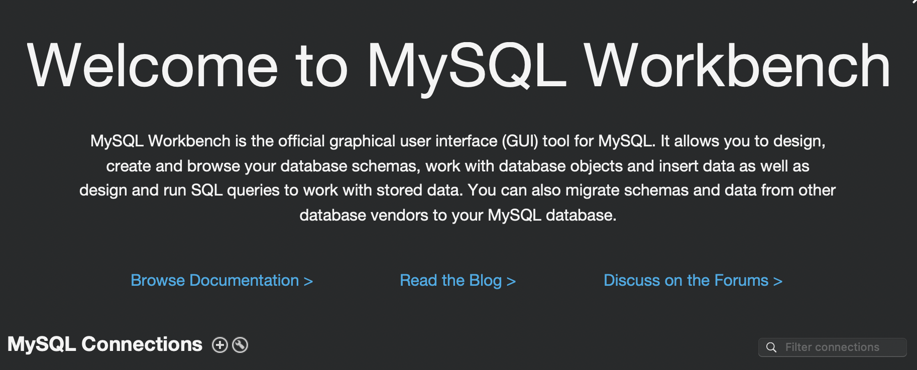 다운로드 및 설치 완료후(설치는 파일만 클릭해주면 됩니다.) MySQL Workbench를 실행하면 아래와 같은 화면을 보실 수 있는데요.