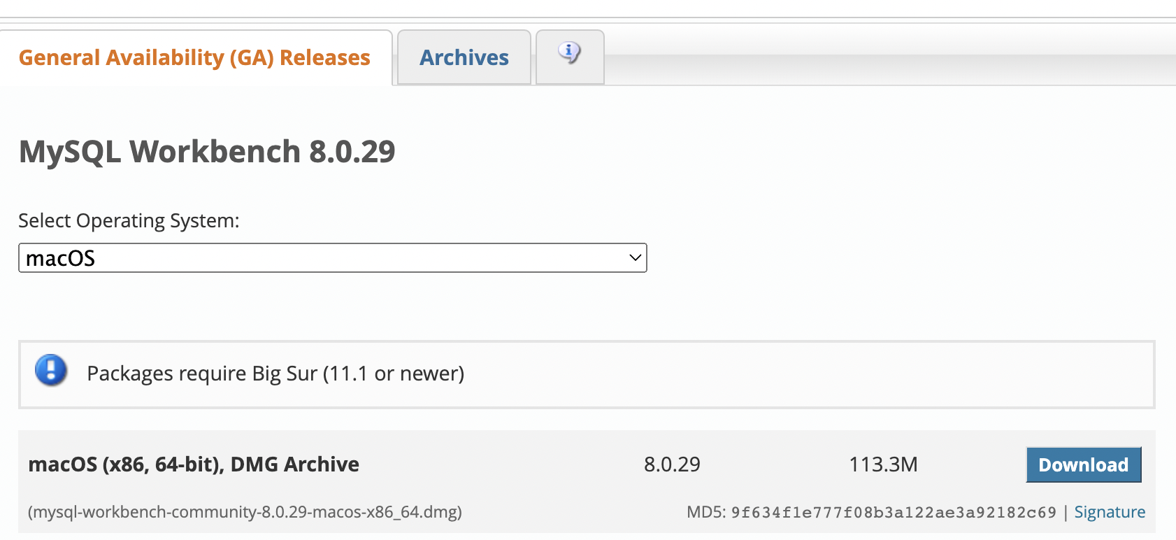 Select Operating System에서 운영체제를 선택하시고 Download버튼을 클릭해줍니다. Archives를 누르면 버전을 선택해서 다운받을 수 있습니다.