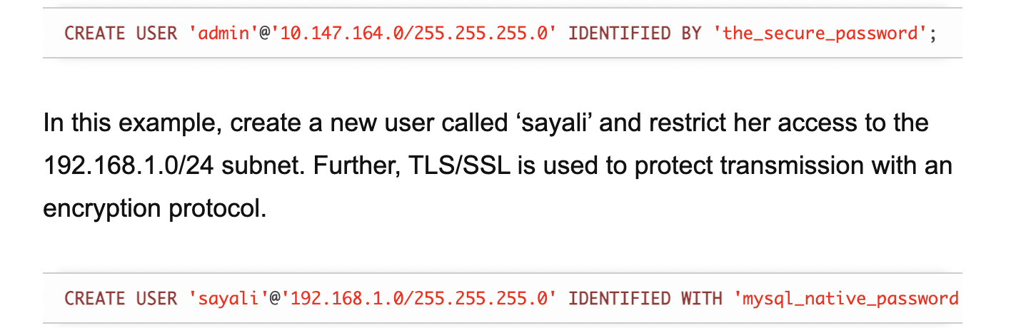 여기서 %는 모든 IP를 의미합니다. %자리에 아래와 같이 구체적인 주소도 할당할 수 있는데요.