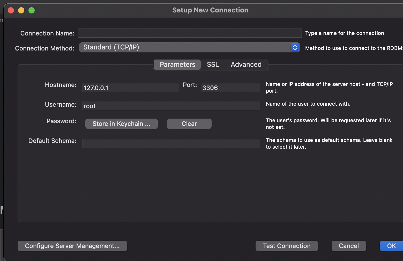 Password: Store in Keychain 클릭 후 앞서 생성한 계정의 비밀번호 입력