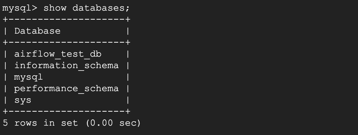 저는 airflow테스트DB와 테스트DB에 접속하기 위한 계정을 따로 만들어줄 예정입니다. 먼저 test_db를 생성해줍니다.