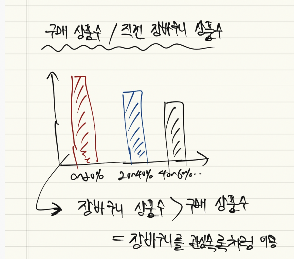보고서에 따르면, 장바구니를 구매 목적 보다는 "비교 목적"으로 이용하기 때문에 이탈률이 높다고 한다. 우선, 이 지점에서 한 가지 추론을 해볼 수 있다.