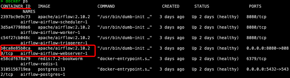 docker ps를 입력하면, 실행한 컨테이너들의 id가 나오는데, 여기서 webserver(=공사현장)의 컨테이너 아이디를 복사해주자.