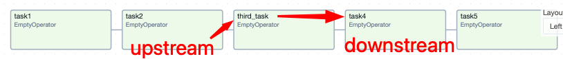 third_task의 입장에서 task1과 task2는 upstream이 되고, task4와 task5는 downstream이 된다. 즉, 아래와 같이 된다.